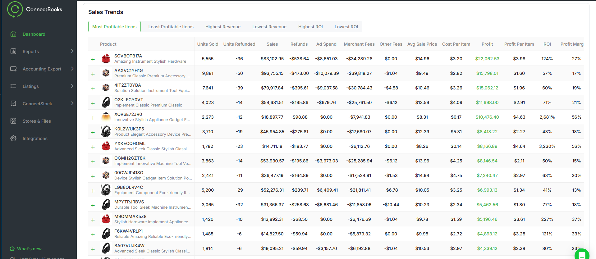 ConnectBooks delivers complete SKU-level clarity that shows exactly: